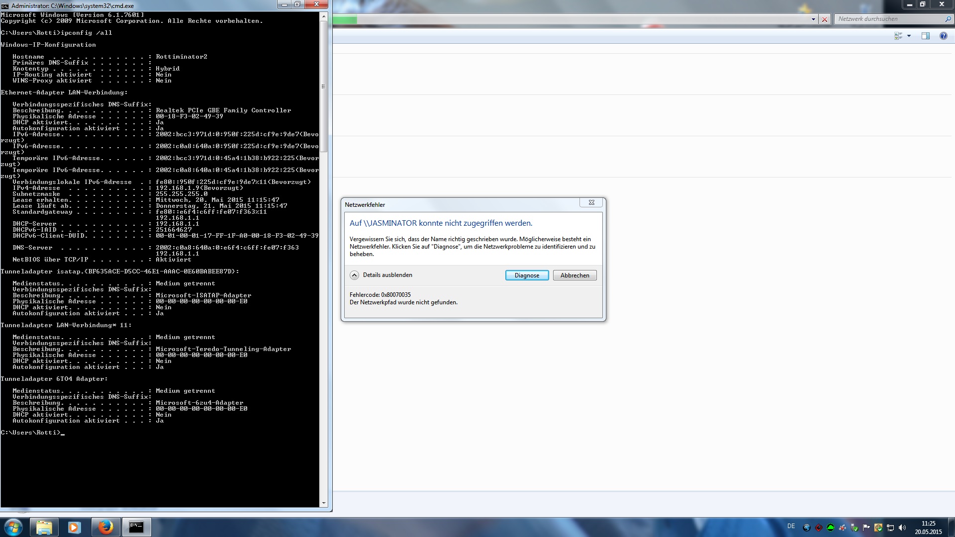 Windows 7 64 Bit und beide PC hängen an einem TP Link Lan Hub.