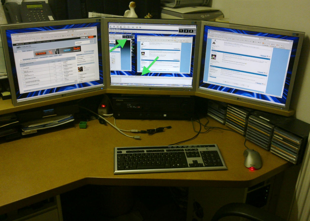 OK 3 Monitore sind schon recht viel, aber es ist ein Hobby und ich habe für 37 Euro in der Bucht nochmal das gleiche Exemplar ergattern können....