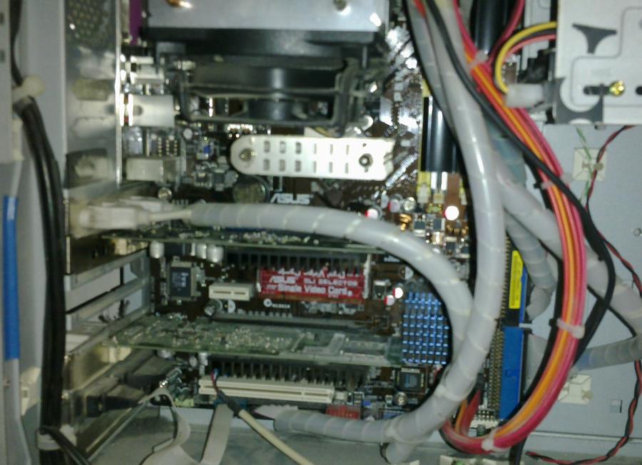 Die 285 habe ich in den oberen PCI-E Slot gestekt, die SLI karte musste ich auf Dial Grafik umstecken, sonst hat die 2. Graka nicht funktioniert