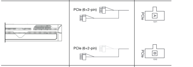 Kurz mal angeschaut: Die zwei PCIe Buchsen liegen an zwei verschiedenen 12V Strängen bei dem NT; also so wie @Nickel sagte ein Originalkabel einzeln an die Karte anschließen und beim zweiten als Y-Stecker nehmen, so wird das gut funktionieren, denn die Karte wird im Betrieb nicht einmal annähernd den Strom ziehen, die über drei einzelne Anschlüsse möglich wären.