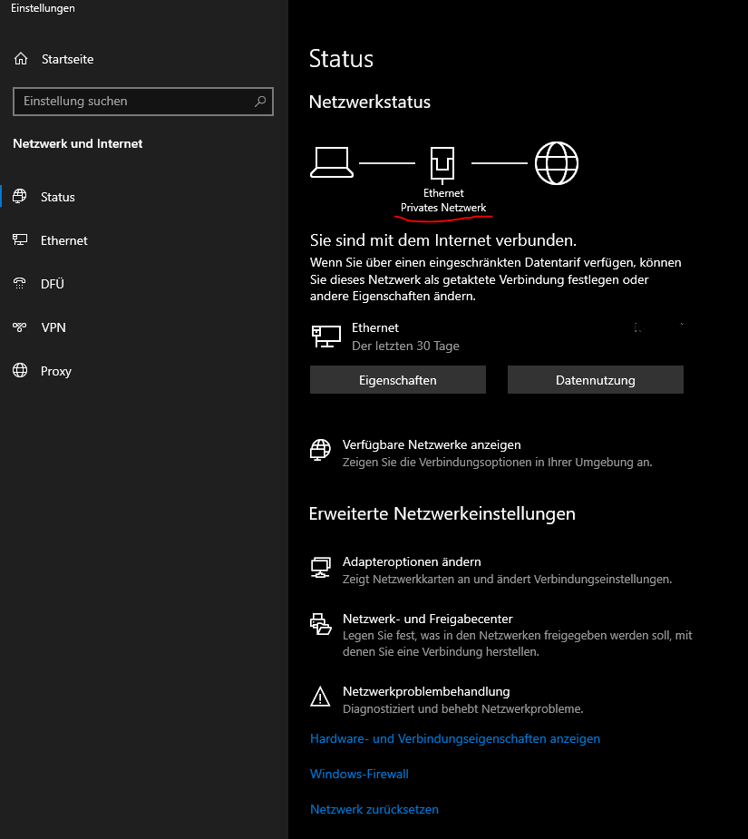 EDIT: Habs gefunden, im Netzwerk und Freigabecenter. Alles siehe Screenshots im Anhang.