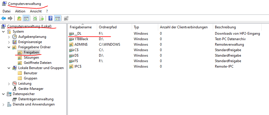 Mein PC von dem aus ich auf die Freigabe zugreife: