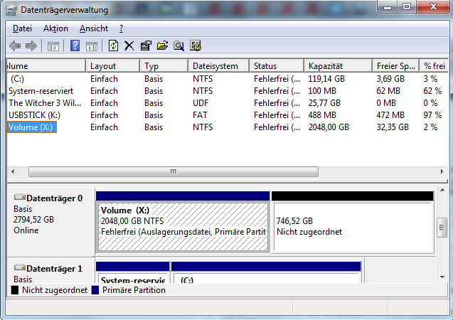 Nr2: Meine Datenträgerverwaltung zeigt bei meiner Hauptfestplatte an, dass darauf noch 700GB zu verteilen sind. Das selbe gilt für CrystalDiskImage. Aber zuweisen kann man den Speicherplatz leider nicht.