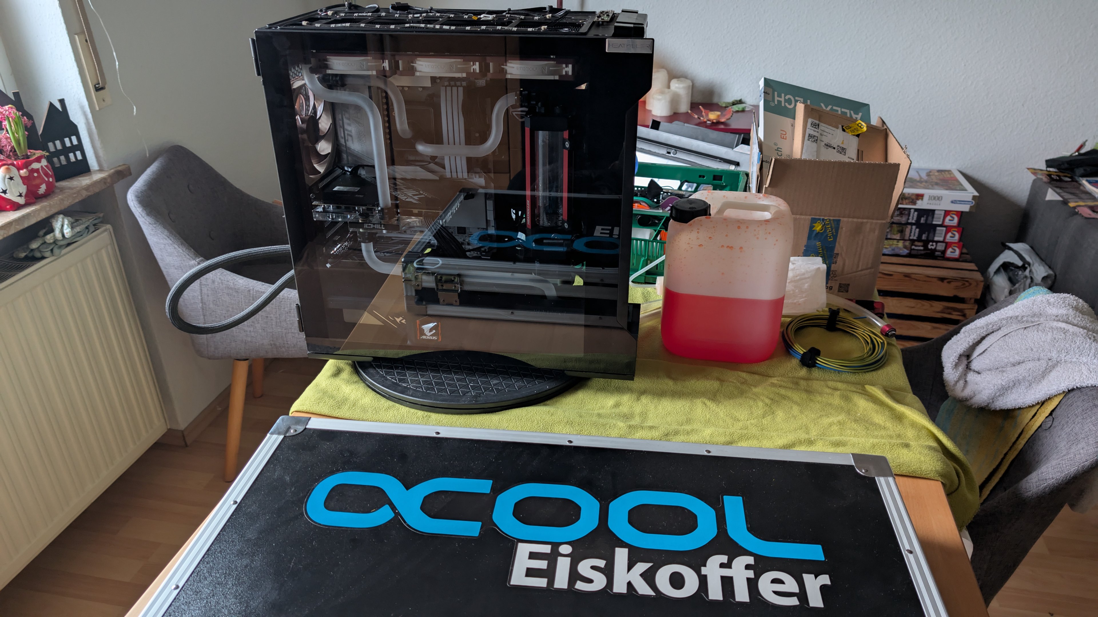 Trotz dem Scheiss Alphacool Einskoffer (der Mal unter uns gesagt der letze Dreckscheiß ist, 2xx € für so einen Rotz ? Die Teile sind nicht hitzeresistent,du kannste eine Halterung exakt ausrichten,is immer irgendwo schief oder weiter vor/zurück der letzen Anschlagpunkte,Messwerkzeug für Grobmotoriker und und und...)