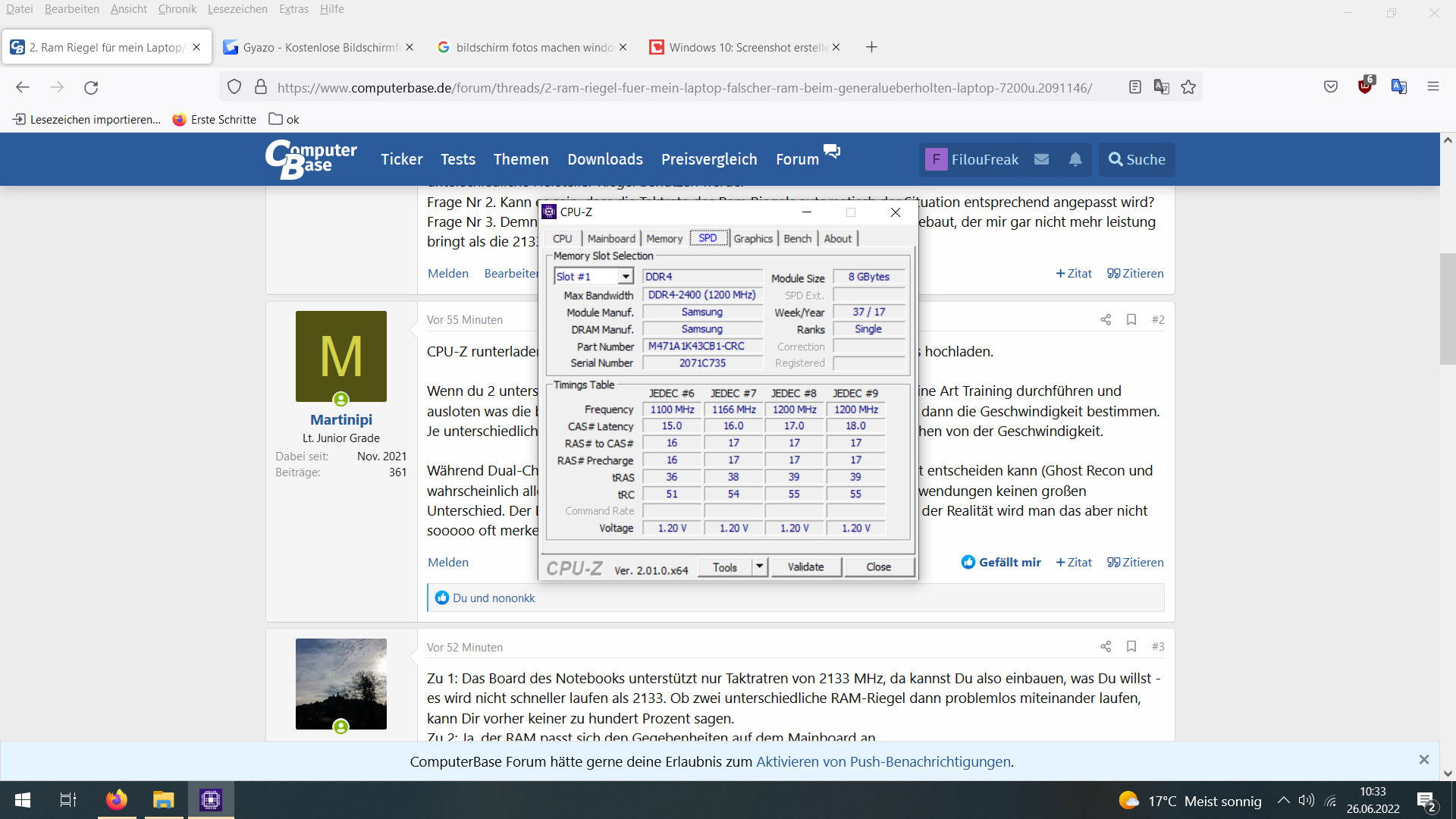 Frage Nr 3. Demnach hat der "refubisched" Händler mir einen Ram Riegel eingebaut, der mir gar nicht mehr leistung bringt als die 2133Mh?