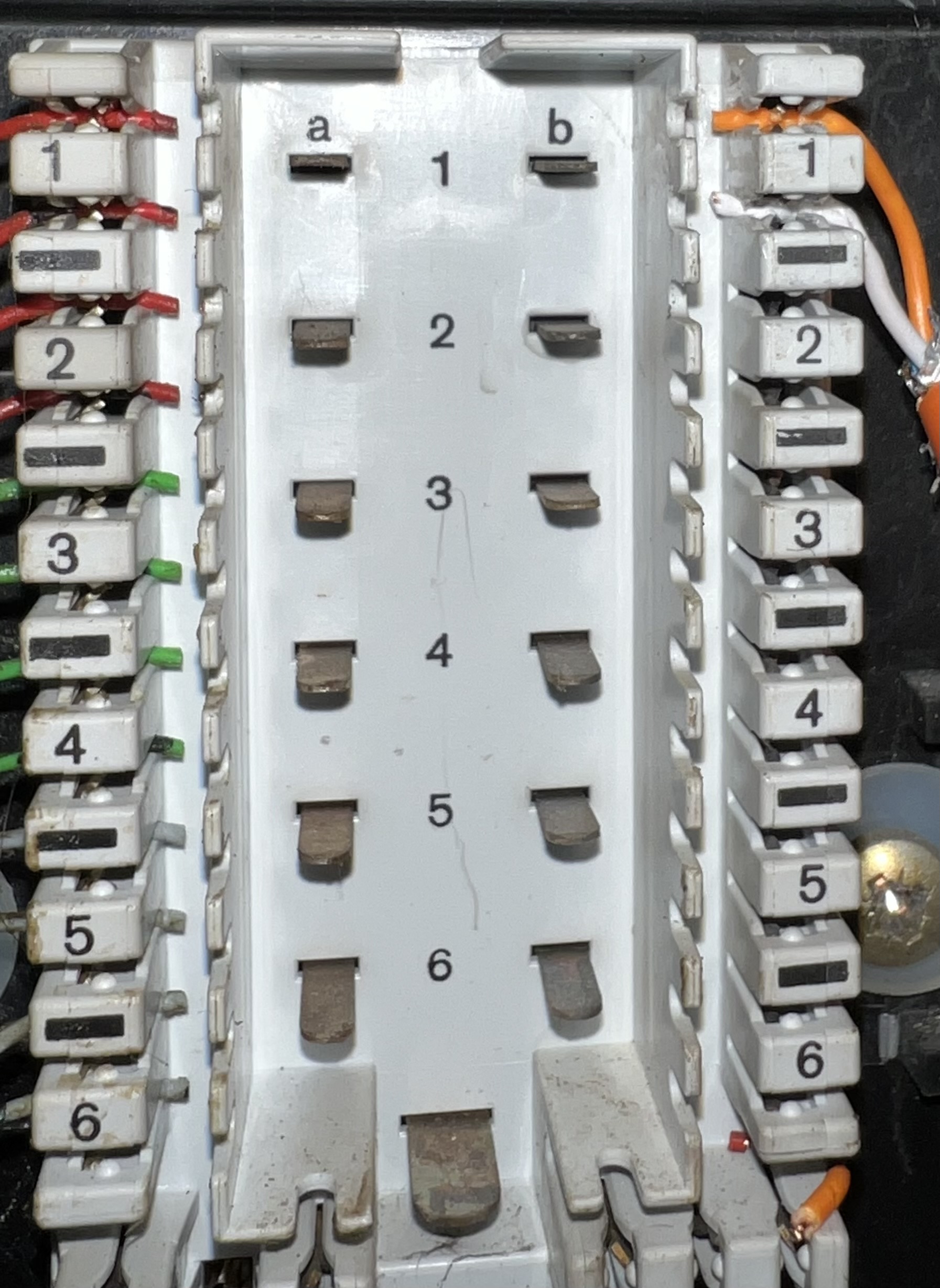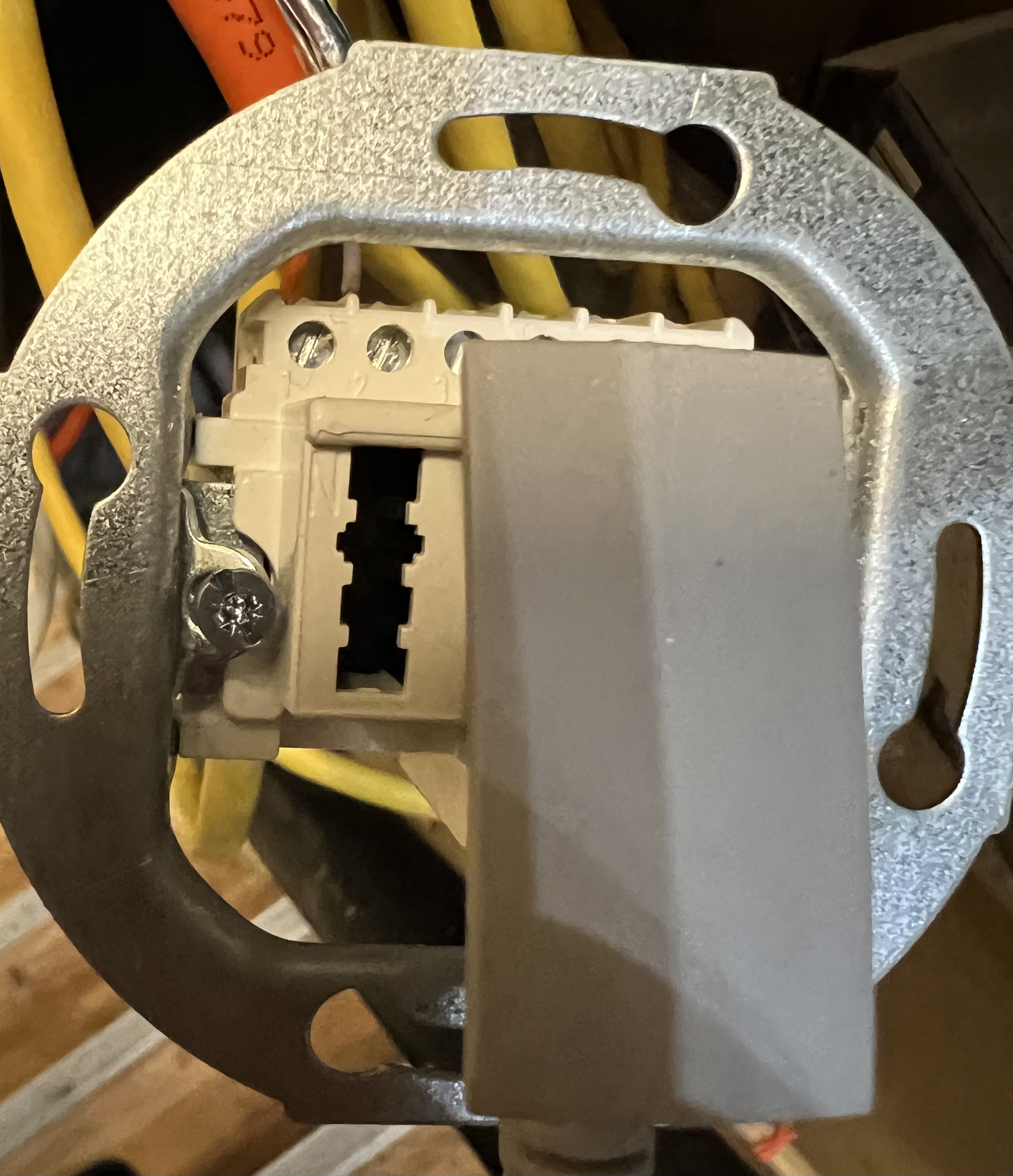 Die Ader müsste imho zwischen den zwei Blöcken eingeklemmt sein und nicht zwischen Block und Plastik.