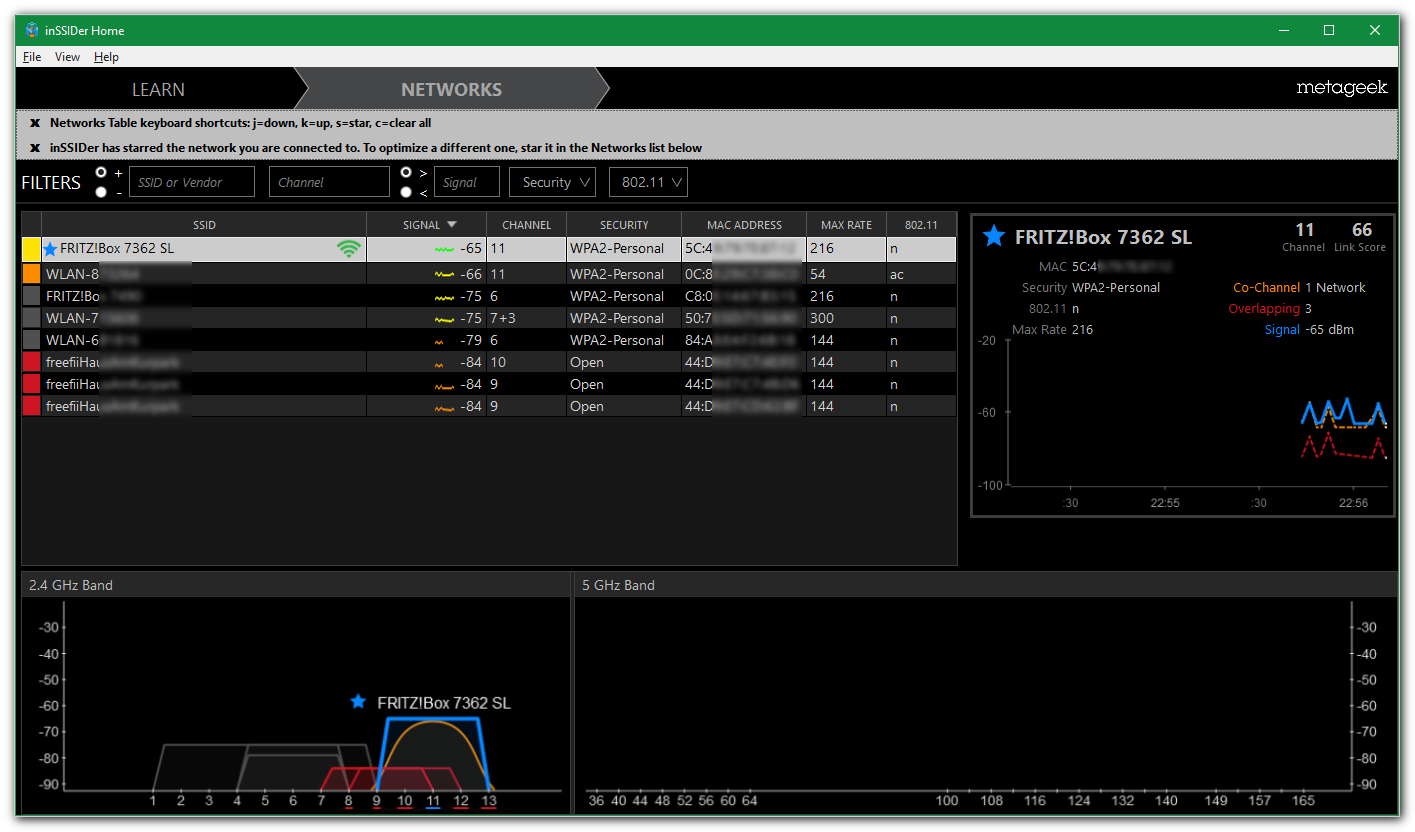Siehe Screenshot: nun mal inSSIDer angestoßen und insb. dieses "WLAN in orange" entdeckend. Weiß0 nicht, seit wann es dieses gibt. Nachbarhäuser jeweils mind. 10 m entfernt (in rot: FreeWifi eines Hotels mind. 50 m).
