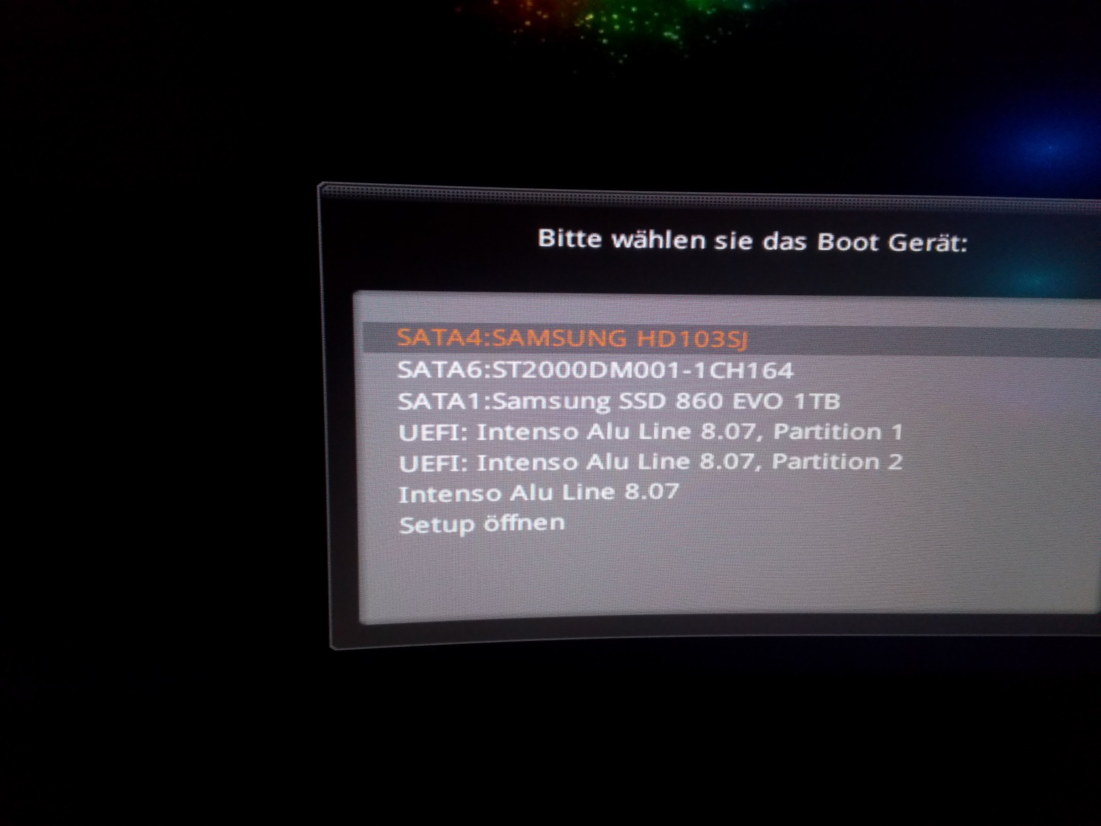 Alles verstanden? Der USB Stick taucht in der Bootliste 2 mal auf. Einmal mit vorangestelltem UEFI und ein weiteres Mal ohne UEFI: Du musst den mit UEFI: auswählen.