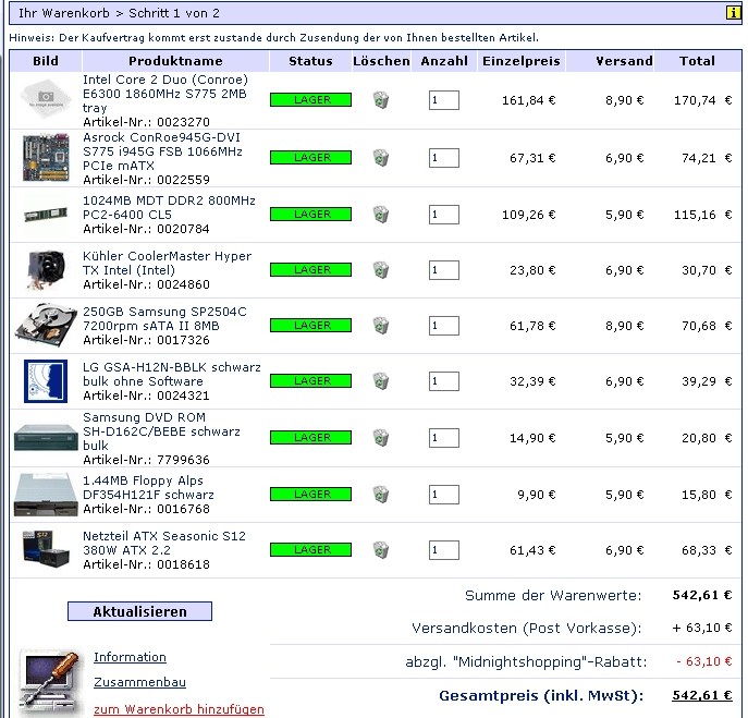ich soll für eine bekannte einen PC zusammenstellen für max. 600€ . sie wollte zwar unbedingt einen E6400, jedoch habe ich ihr davon abgeraten, da sie den rechner nur für office und internet nutzen möchte.