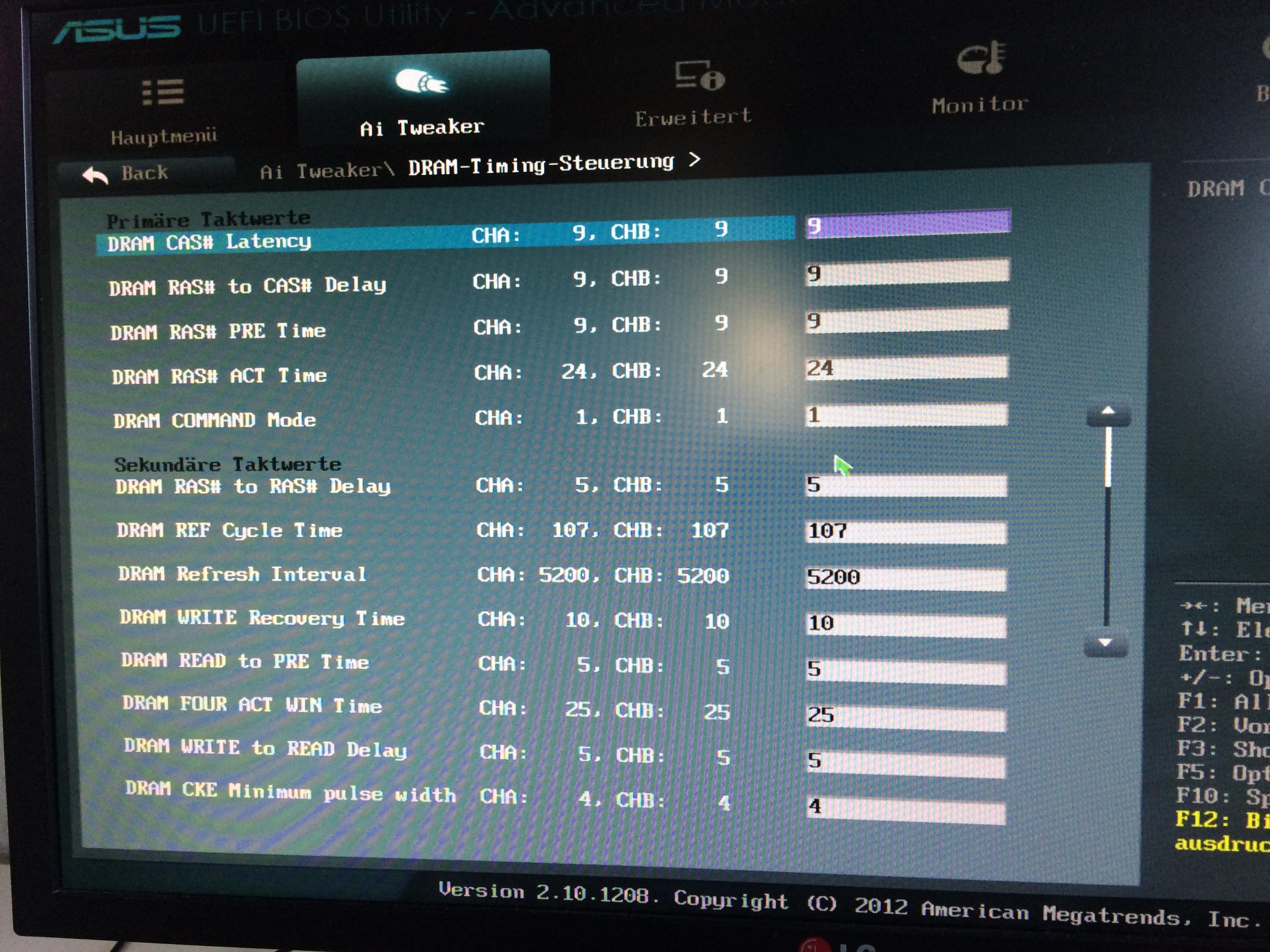 Habe ich gemacht aber nach dem ich auf MemOk drücke startet er einfach neu und sagt anschließend Memory Ok! Dann muss ich F1 drücken um ins BIOS zu kommen. Dort sehe ich dann aber dass alle Einstellungen die den RAM betreffen auf AUTO stehen. So läuft das System aber nicht stabil.