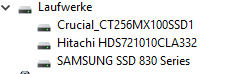 die Platten angezeigt bekomme, jedoch ohne jegliche Details dazu. Intel Rapid Storage, zeigt mir alles an. Seriennummer, Modell, Firmware und Kapazität.