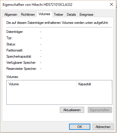 Bitte klicke vorher auf "Aktualisieren" wenn du einen Screenshot von Volumenansicht im Gerätemanager machst. Sonst zeigt er per default dort nix an!!