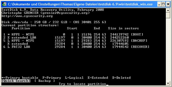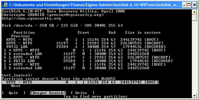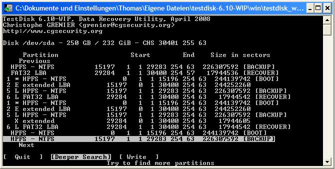 Habe deshalb mal wieder Testdisk beansprucht und die Partitionen gesucht und auch gefunden.