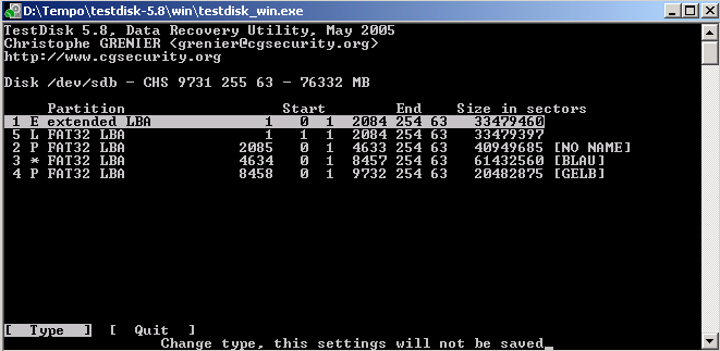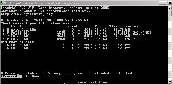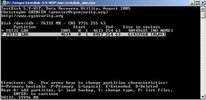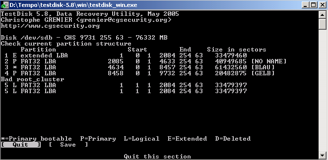 die ich Dank Fionas Hilfe auch lösen konnte, habe ich mich mittels Testdisk bei der ersten Partition (GRÜN)