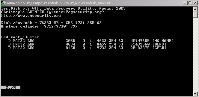 nix vernünftiges raus und mittels Testdisk komme ich (allein!?) auch nicht weiter.