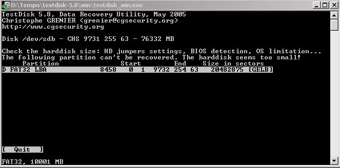 Am Ende der tieferen Suche heisst es das die kleinste Partition der PLatte zu gross sei und deshalb wiederhergestellt werden kann.