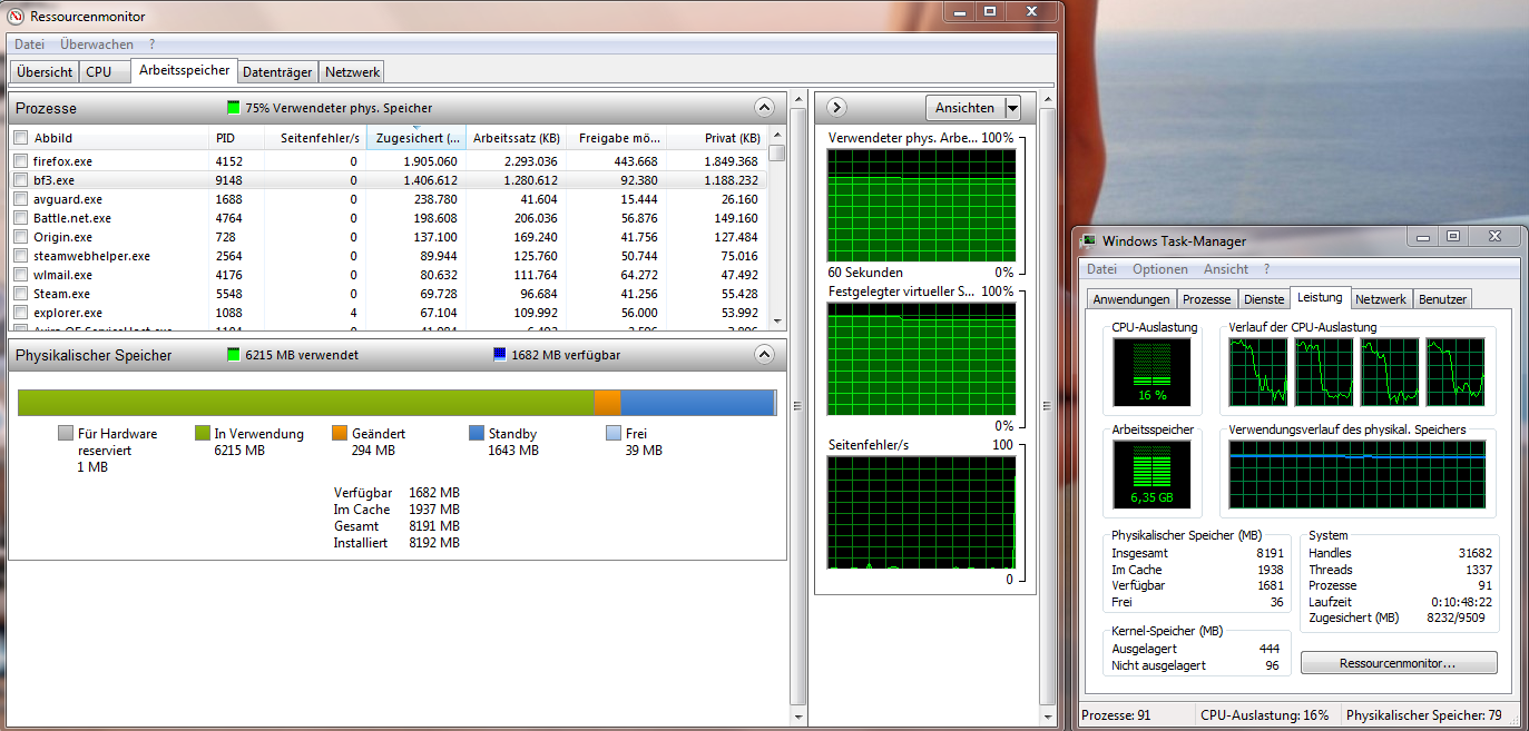 Hm kann ich nicht glauben. Bf 3 frisst Ram zum Frühstück. Ich hatte soagr schon mal mit 8 GB Probleme, weil sich ein laufender prozess noch ein paar MB extra geschnappt hat, während ich gerade am Spielen war, das hat BF 3 dann mit fiesen lags quittiert.