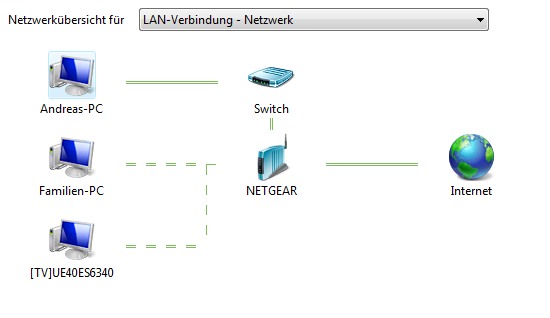 Jetzt ist mir aufgefallen, dass mein PC über einen Switch??? an Netgear geht, die beiden anderen Geräte allerdings direkt an Netgear dran laufen, könnte es daran liegen? Und falls ja wie bekomme ich meinen Rechner auch direkt an Netgear?