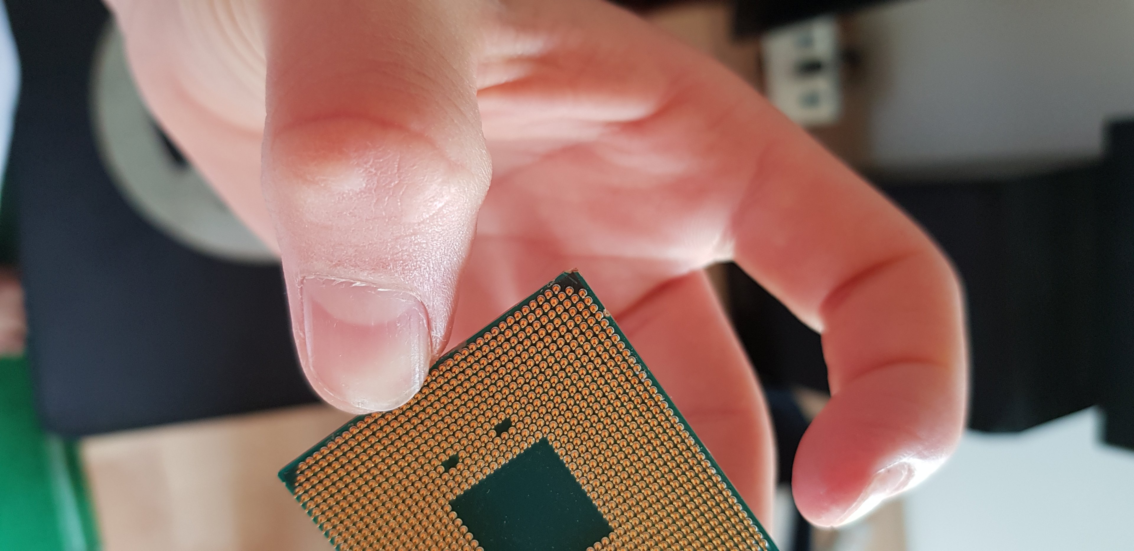 pins sehen gut aus, allerdings hat die cpu ein paar kleine macken an dieser grünen platte auf der die pins sind