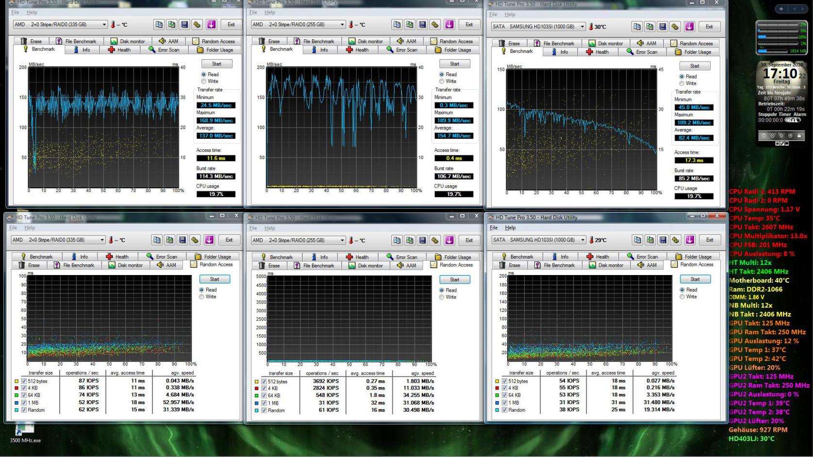 Meine überlegungen sind entweder die zwei neuen 2 Samsung-Platten im RaidO für insgesammt ~60-70 € oder eine SSD, für etwa 130 €. Würde sich Geschwindigkeitstechnisch die beiden Konfigs sehr unterscheiden? Leider finde ich keinerlei Tests im Netz über diese Kombi. Wer hat erfahrung und kann mir entsprechendes mitteilen? Win 7 Prof oder Ultimate x64 soll druff. Restliche Hardware in der Sig.
