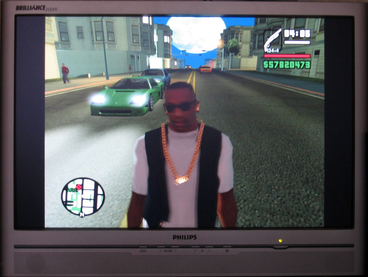 Im Gegenteil, da sieht CJ nich so schmal aus, obwohl er 100% Muskeln hat un der Lamborghini-verschnitt fetzt auch mehr.