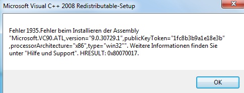 Also ich versuche 2008 Redistributable Package (x86) für mein Windows 7 zu installieren.