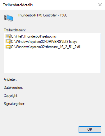 Folgendes Treiberpaket ist für alle Thunderbolt 2/3-Controller und Windows 10 x64 geeignet: