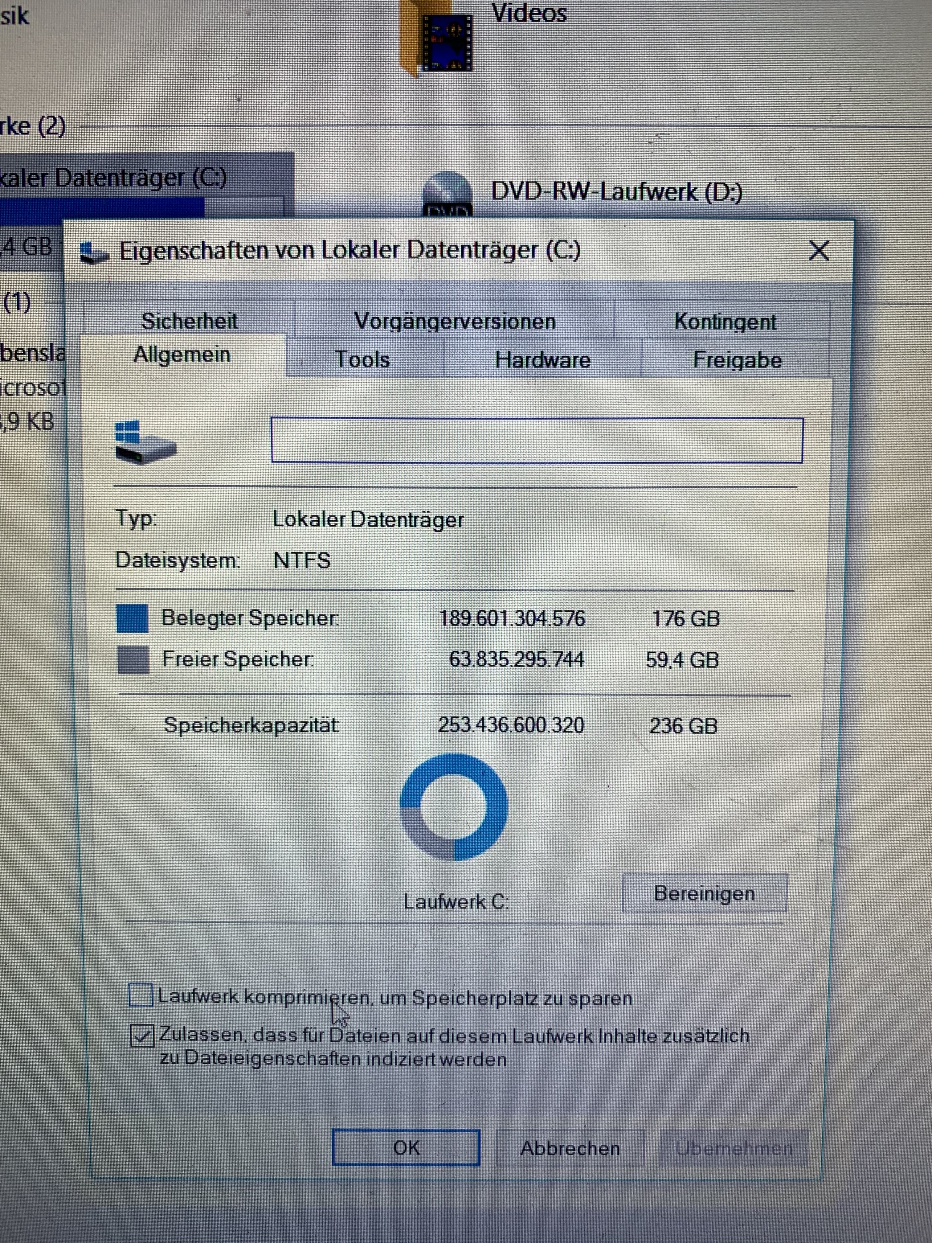 Dennoch zeigt die Datenträgerverwaltung und die Windows Explorer Übersicht an, dass nur 60 GB frei sind - für mich sind 236-22 aber 216 GB, nicht 60...