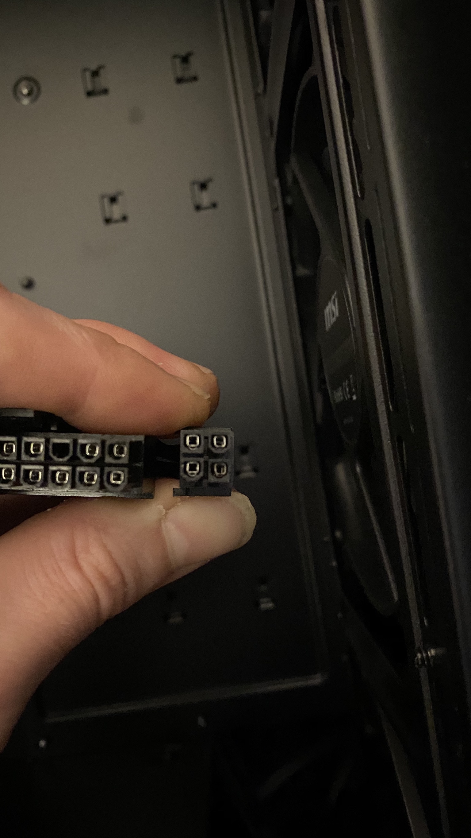 Hast Recht. Der 20 Pin scheint zu passen und der 4 Pin auch, nur wohl nicht zusammen. Dann kann es ja nur daran liegen, dass irgendwas verhakt oder man dann mehr Kraft braucht.
