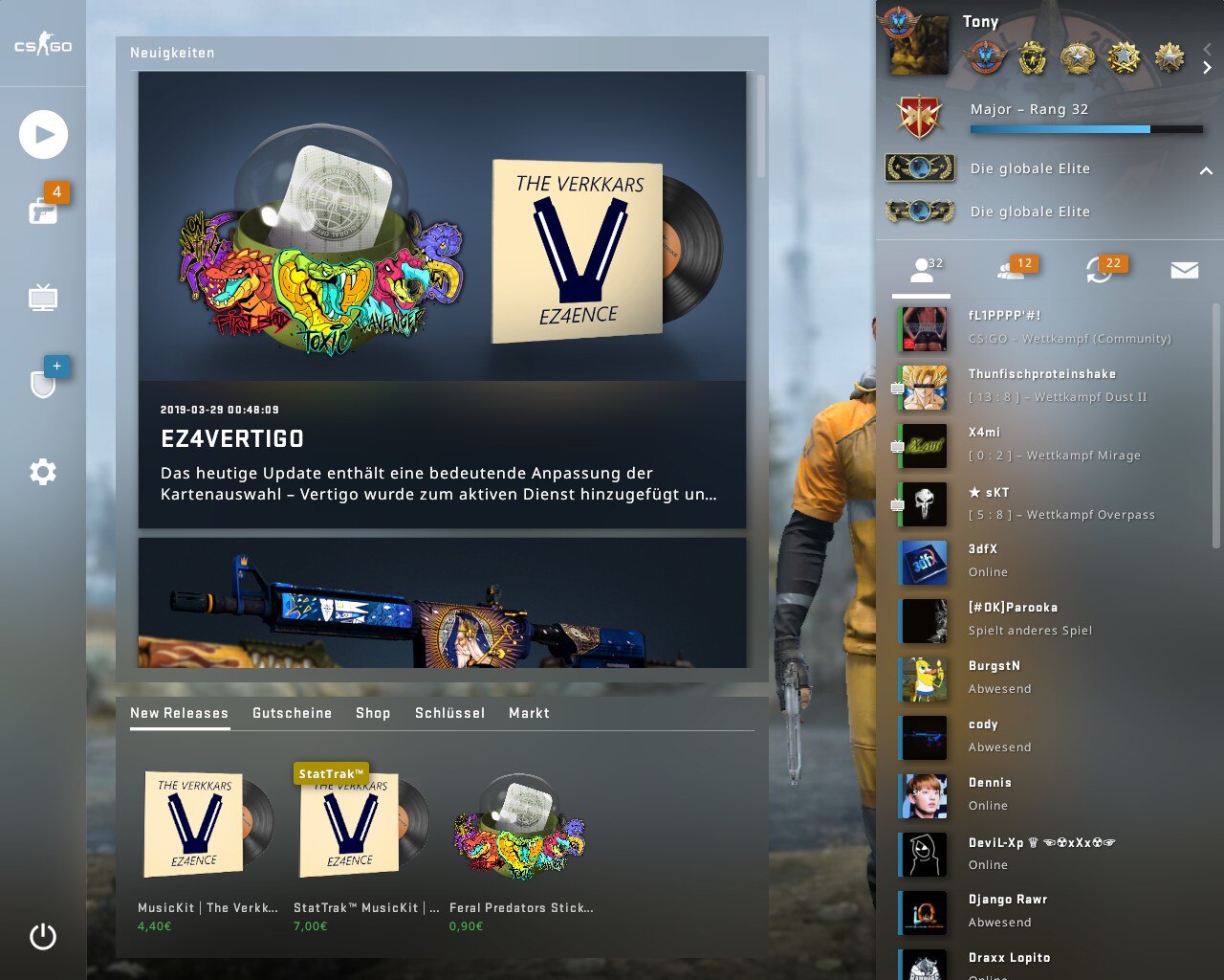 Meine Lieblingsmap waren immer de_dust2 und hatte meist gegen Bots gespielt. Online Matches bin ich nur Random oder andere Modus eingetreten und bis Level 4 als Rang erreicht. 😬
