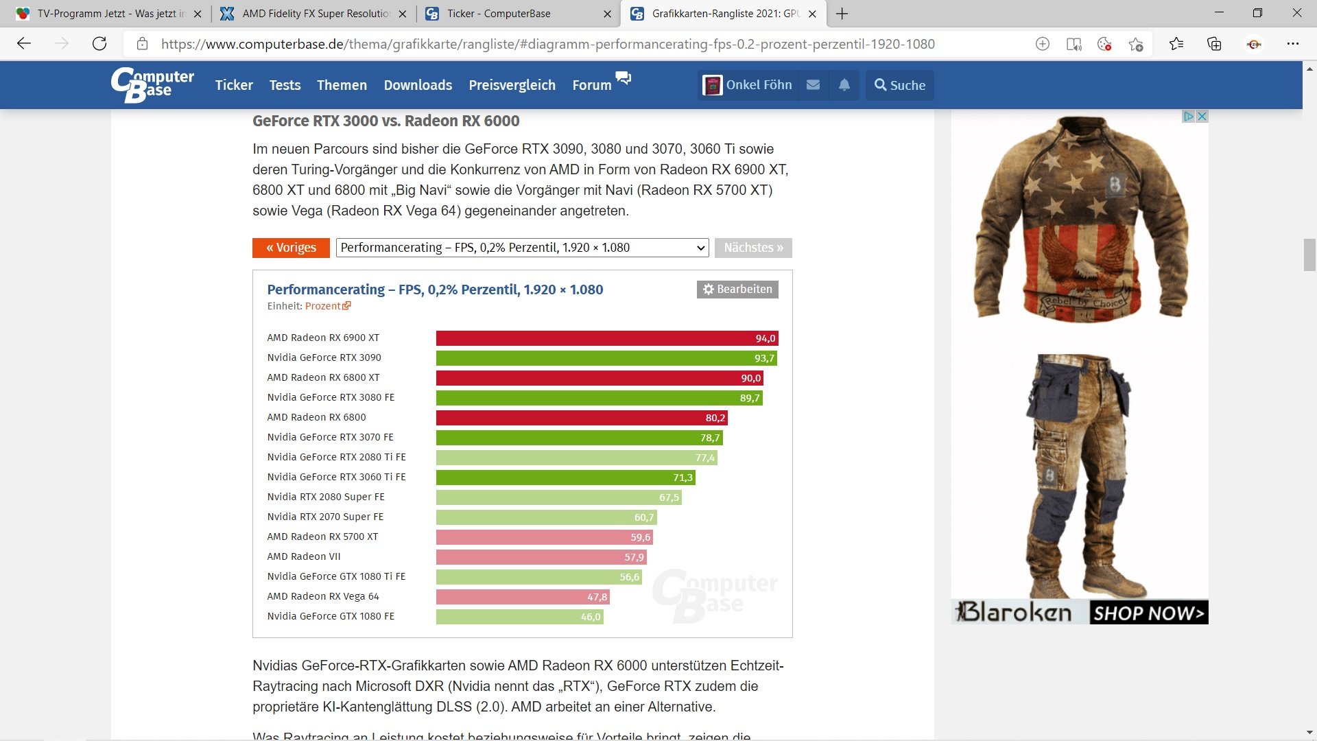 "Mit der nachgereichten RX 6900 XT (Test) und dem Vollausbau von Navi 21 gelang es sogar fast, ohne RT die GeForce RTX 3090 vom Thron zu stürzen."