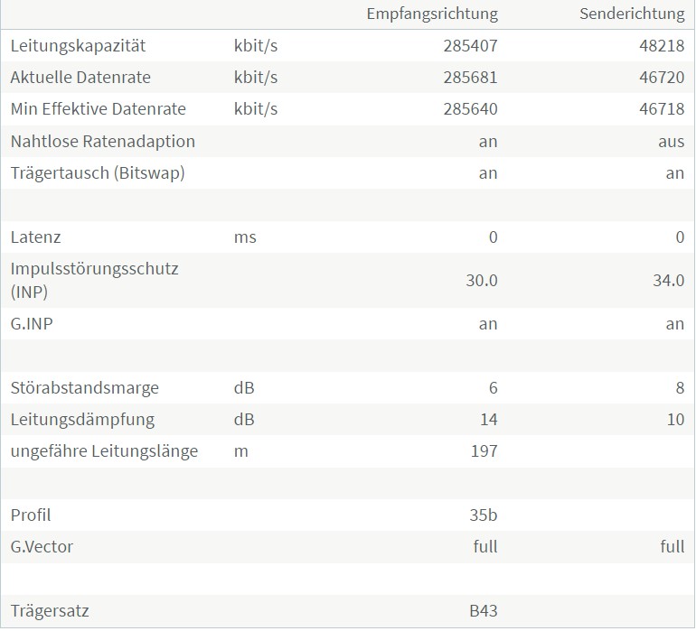 Ich habe Laut meiner Fritzbox eine Leitungslänge von 200 Metern.