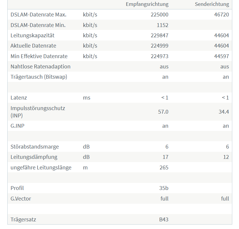 Hallo, ich habe 2 Jahre bei 1&1 die 250er Leitung gehabt, jedoch zu spät gemerkt dass ich eigentlich auf einem 175er Profil war. 200 Mbit kamen bei mir an, hatte nie Probleme, bis ich vor Kurzem auf das 250er Profil hochgestuft wurde, seitdem hab ich 2-3 Abbrüche pro tag, massig unkorrigierte Fehler und die Störabstandsmarge sinkt auf 5, zuvor war sie bei 15.