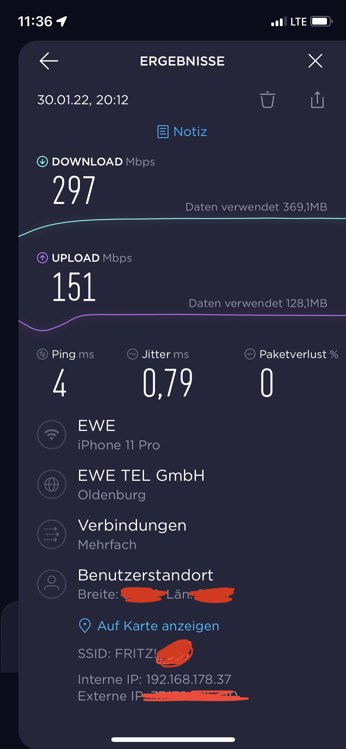 Zum Einsatz kommt aktuell eine Fritzbox 7590. Die steht ca. 4m Luftlinie vom PC entfernt ist durch eine Wand unterbrochen.