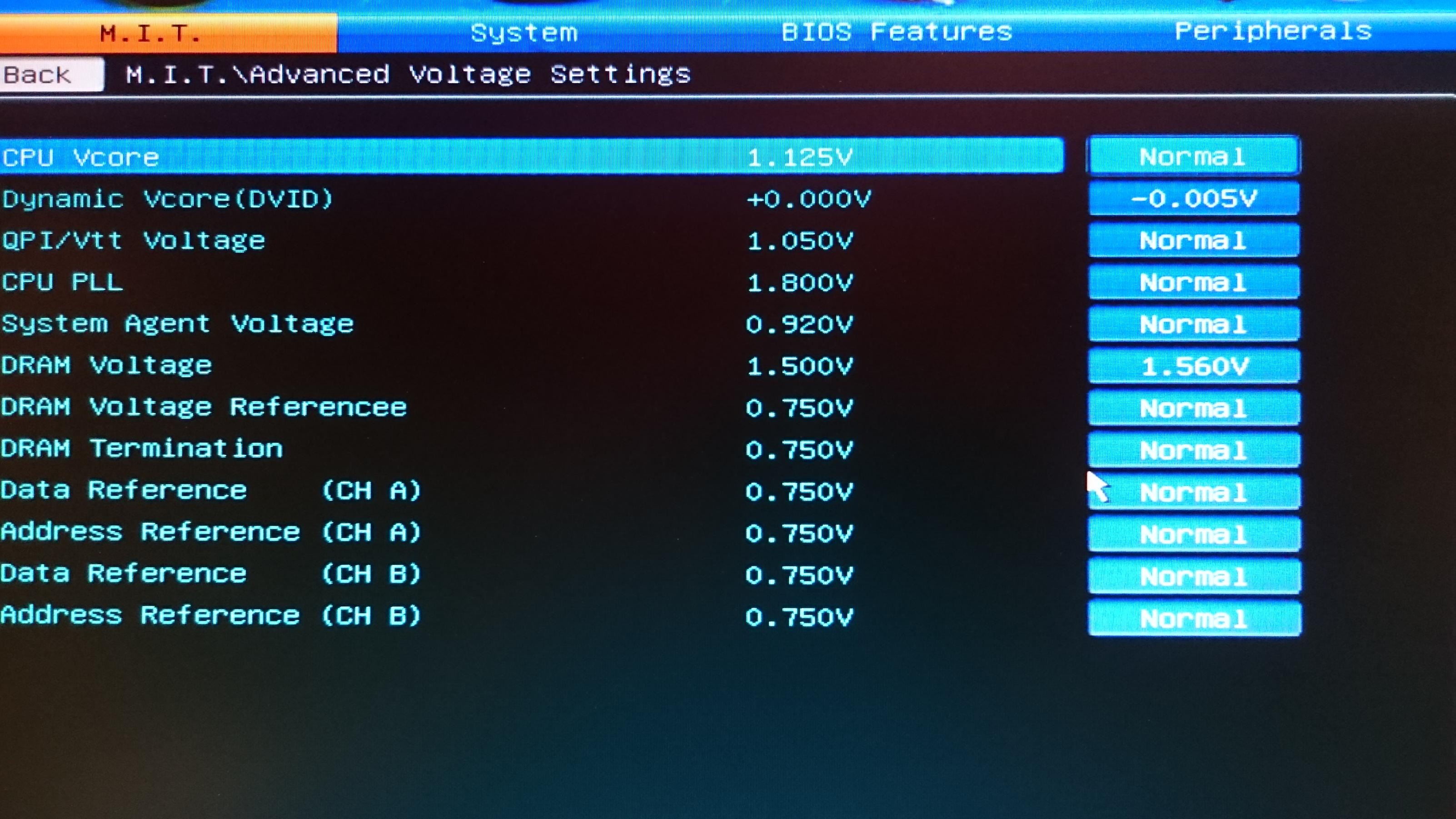 Wenn ich den Vcore die Einstellung auf normal hab und eine positive DVID einstelle dann steht beim nächsten Bootvorgang als normal Wert bei der Vcore 1.26