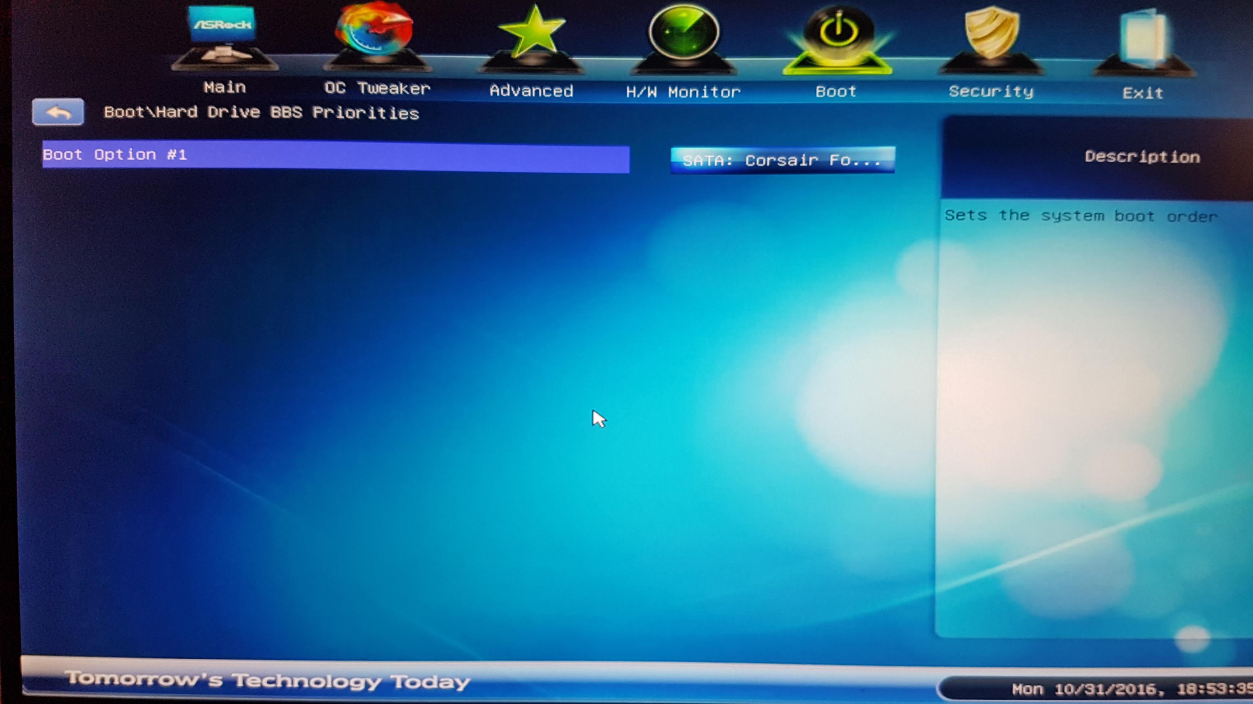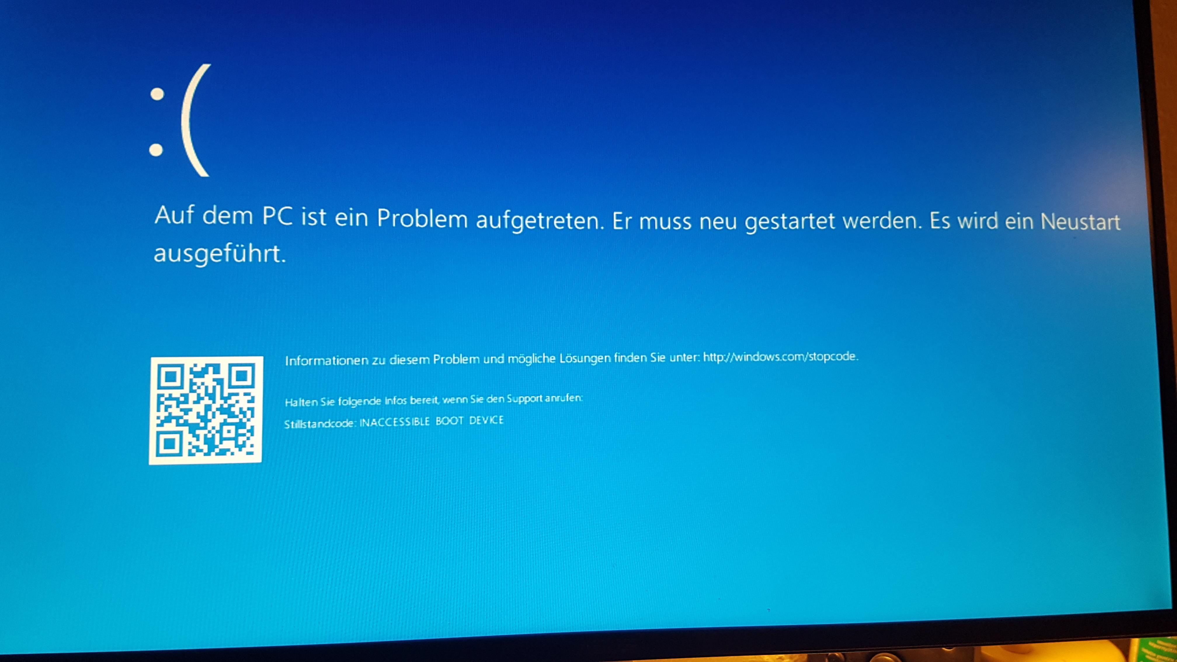 Habe mein cpu übertaktet gehabt und in bios alle setting gelöscht auch die Übertaktung... nix.. usb wo ich upgedatet habe und alle anderen Festplatten sind raus nur die ssd. Immernoch die gleiche Fehlermeldung...