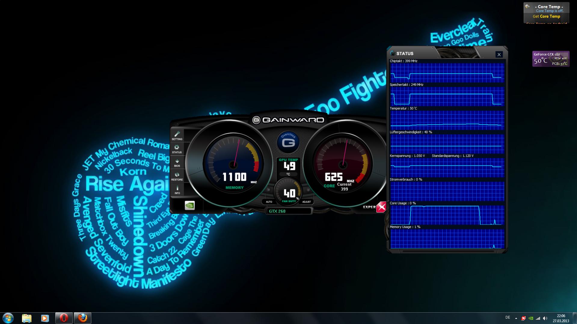 Seit gestern macht die Gainward 260 GTX meines Bruders Probleme, und zwar wird sie heiß ohne das man ein Programm oder ein Spiel öffnet, also einfach wenn man den PC aufm Desktop laufen lässt.Dazu kommt noch das dann das Bild kurz flackert(schwarz) und danach kühlen die Lüfter sie wieder runter.