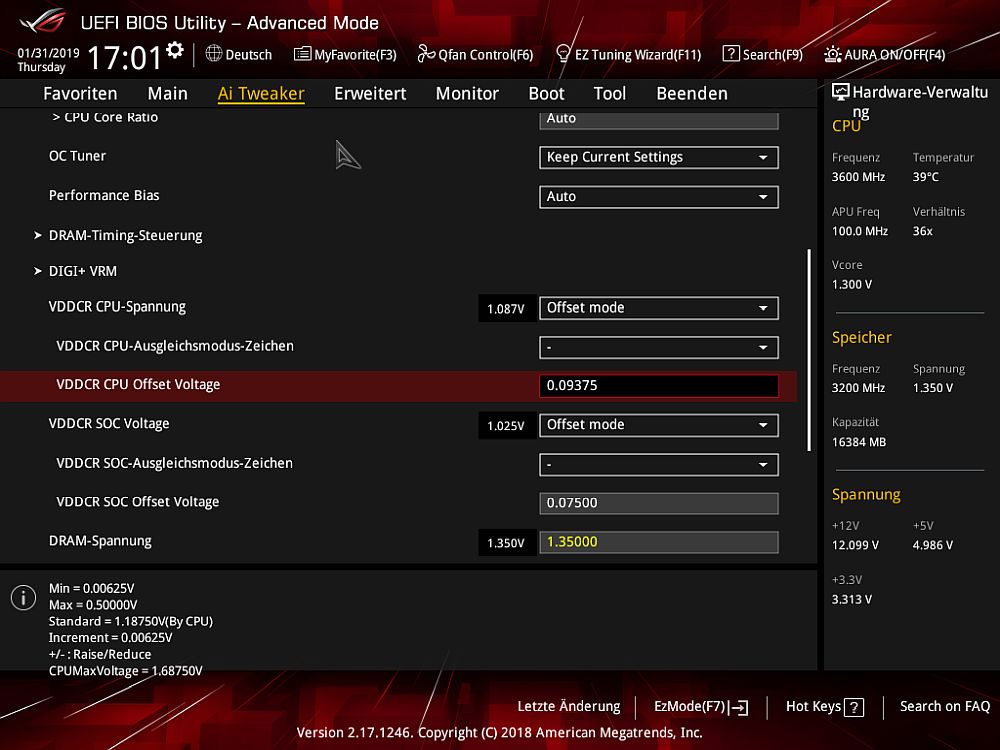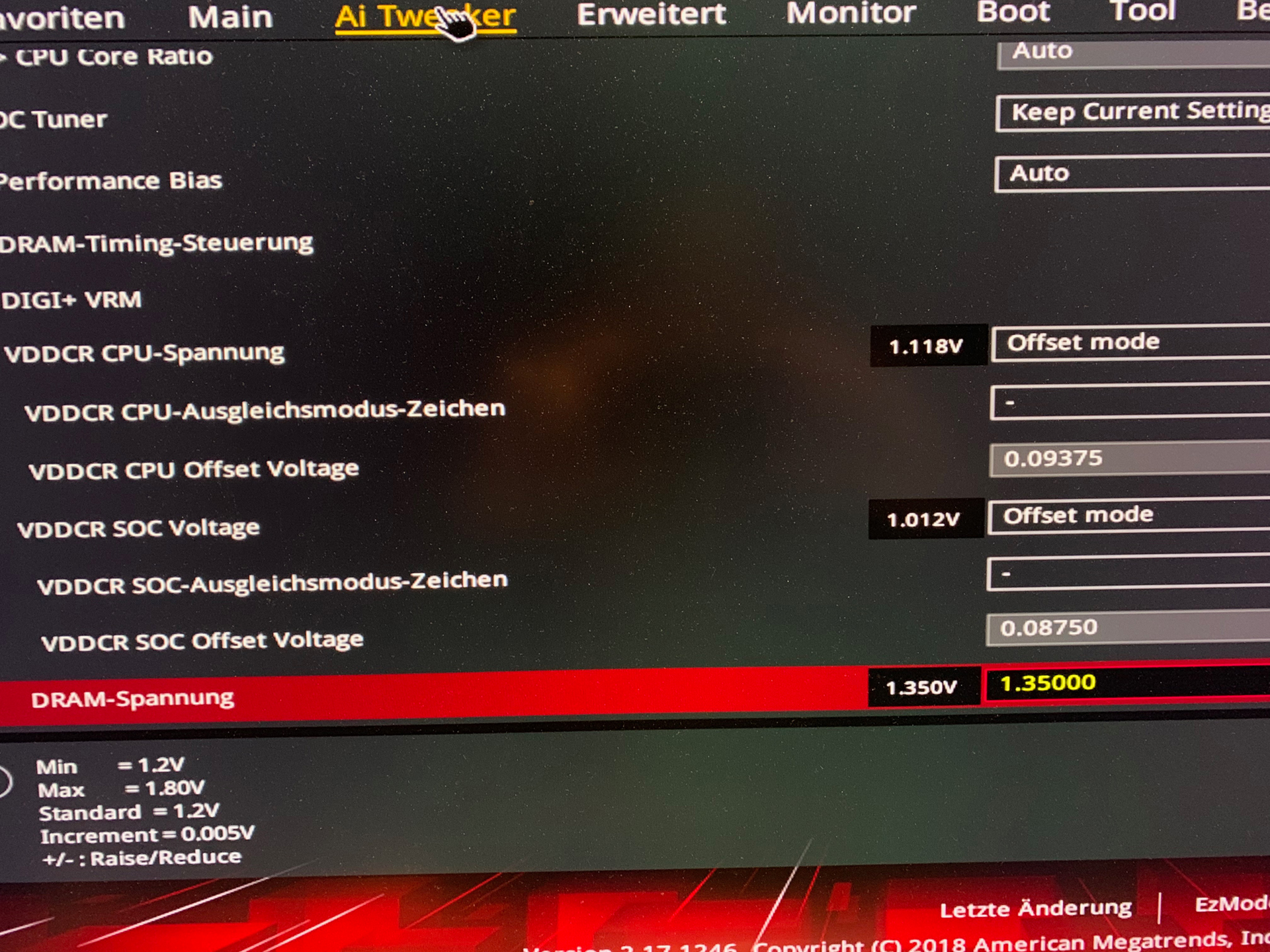 Aber wie geht das, was muss ich im Bios einstellen? Die VDDCR habe ich schon versucht über das Offset ins Minus zu stellen. Es ändert sich aber nichts wenn ich mir die Vcore anschaue, die ist genauso hoch wie vorher.