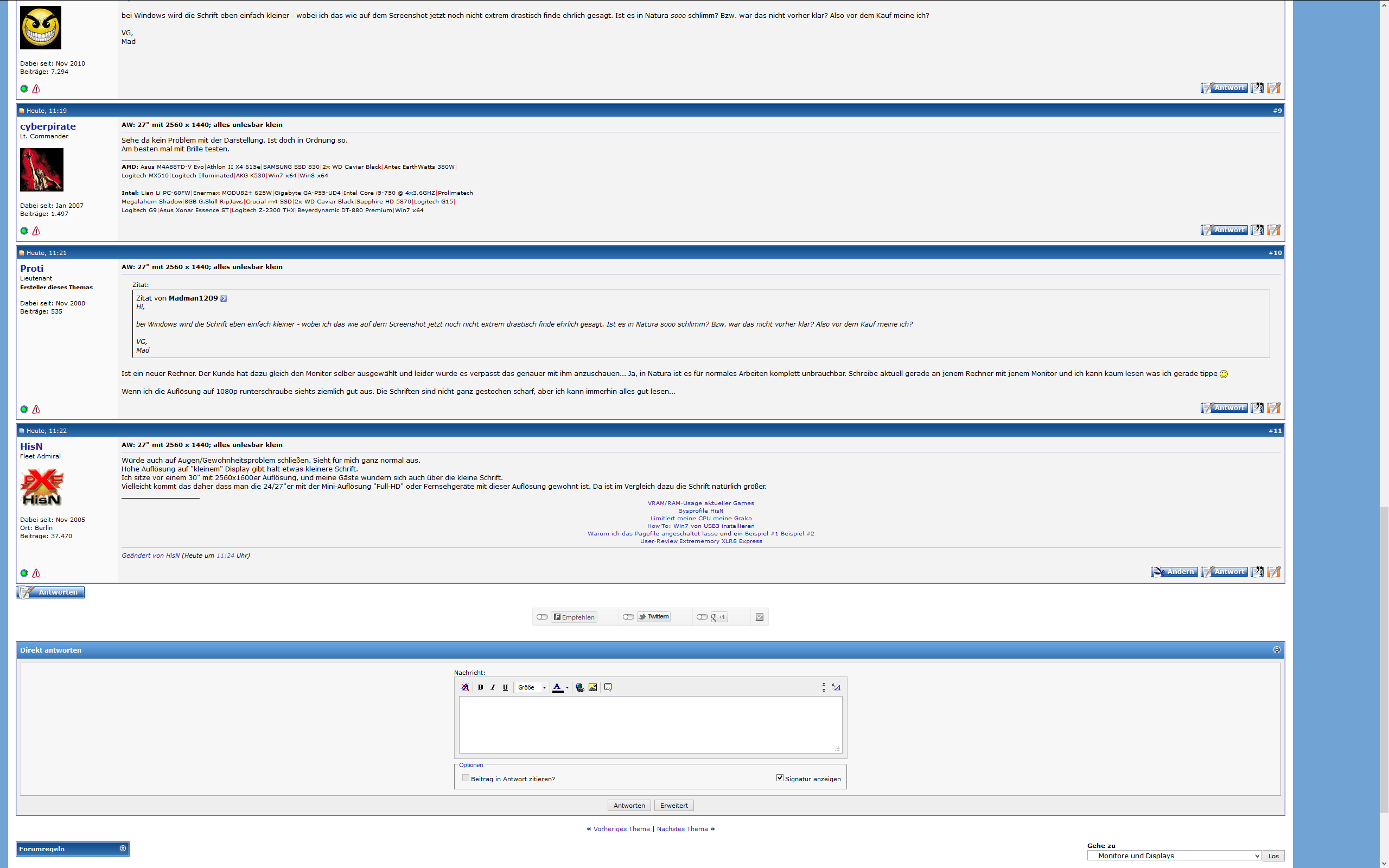 Habe hier einen Samsung SyncMaster S27A850D LED mit einer Auflösung von 2560 x 1440. Kunde wollte den unbedingt haben, also aufgestellt und... alles sauklein.