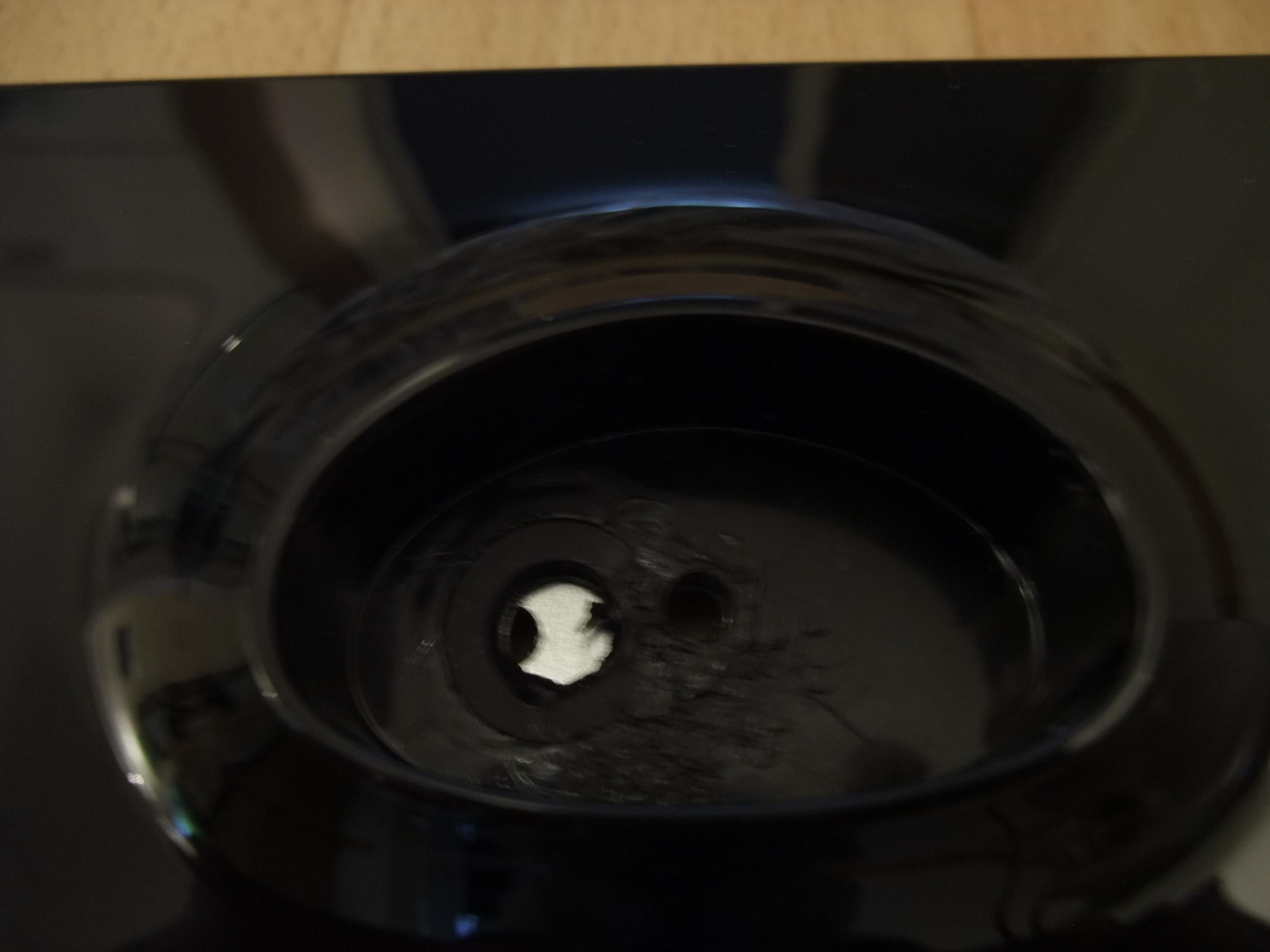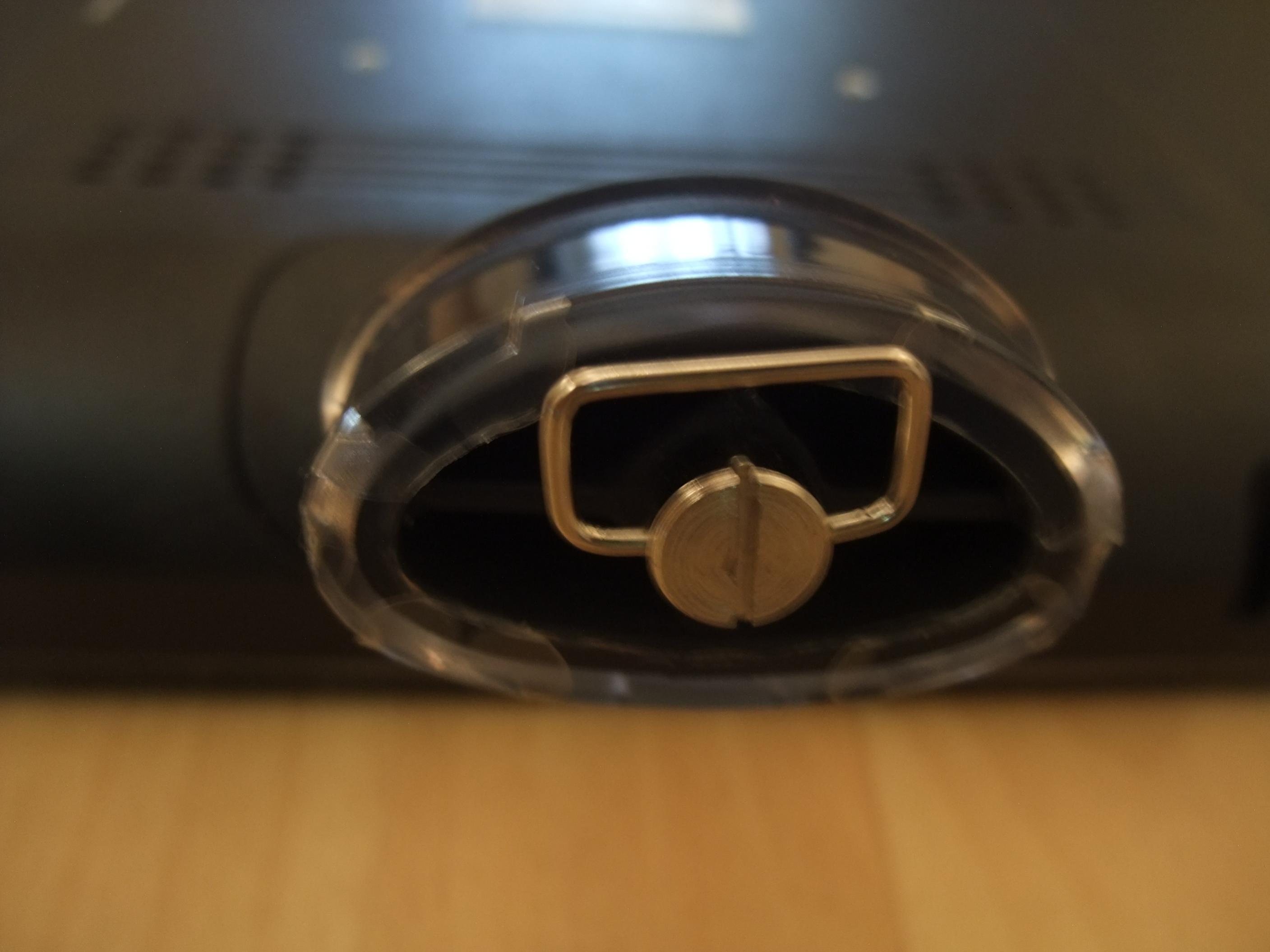 Vorne ist die "Abdeckung" extrem nach vorne gebogen wie auf dem Bild. Ich kann fast meinen kleinen Finger dazwischen stecken....