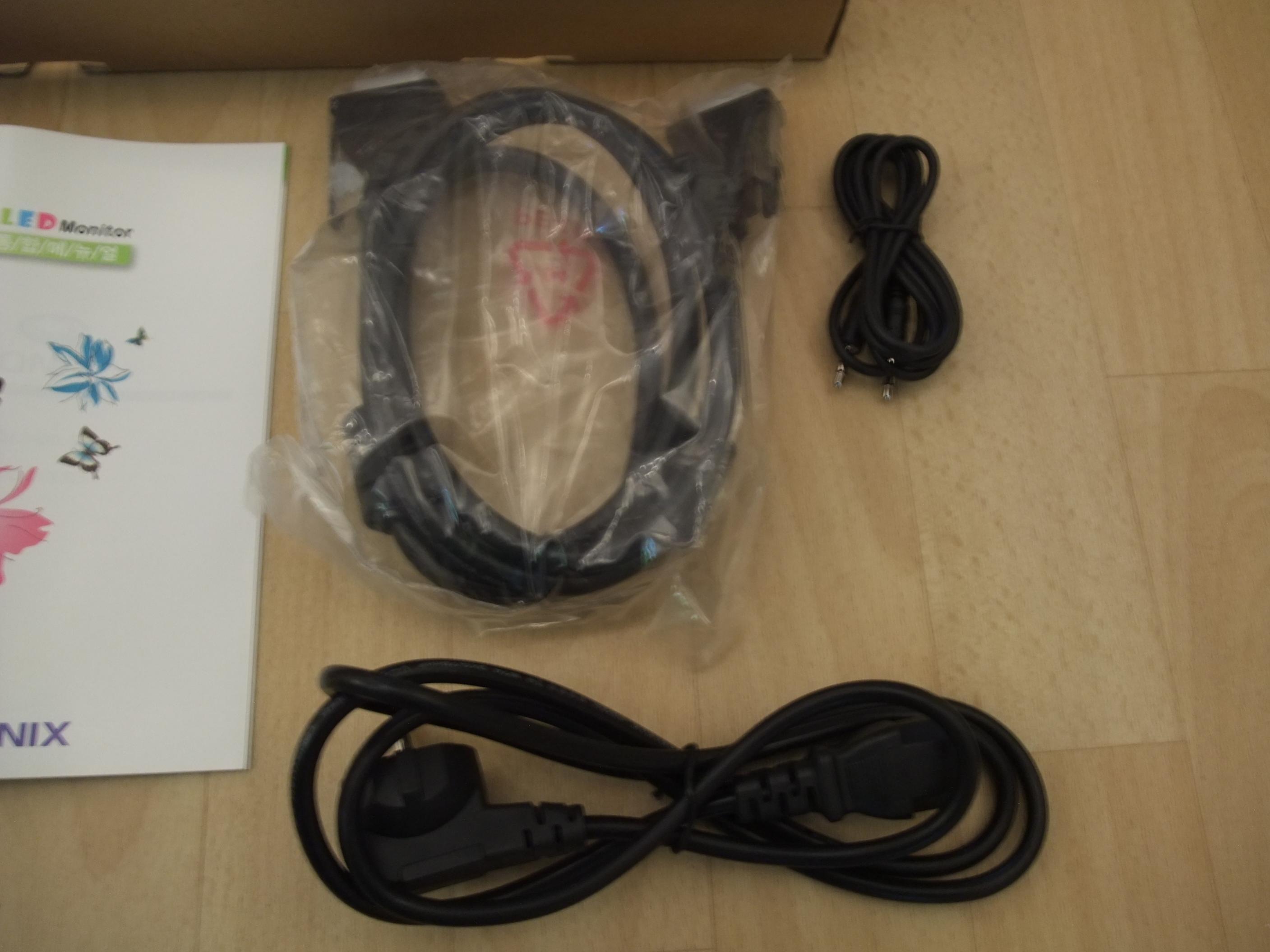 Ich habe Fotos vom Unboxing gemacht (inkl. Zubehör) und kann das bei Bedarf die Tage mal uppen. Das Case des Monitors ist, wie zu erwarten, haptisch wenig ansprechend und es knarzt doch an einigen Stellen. Das stört mich ehrlich gesagt aber nicht weiter, zudem hab ich das auch erwartet.
