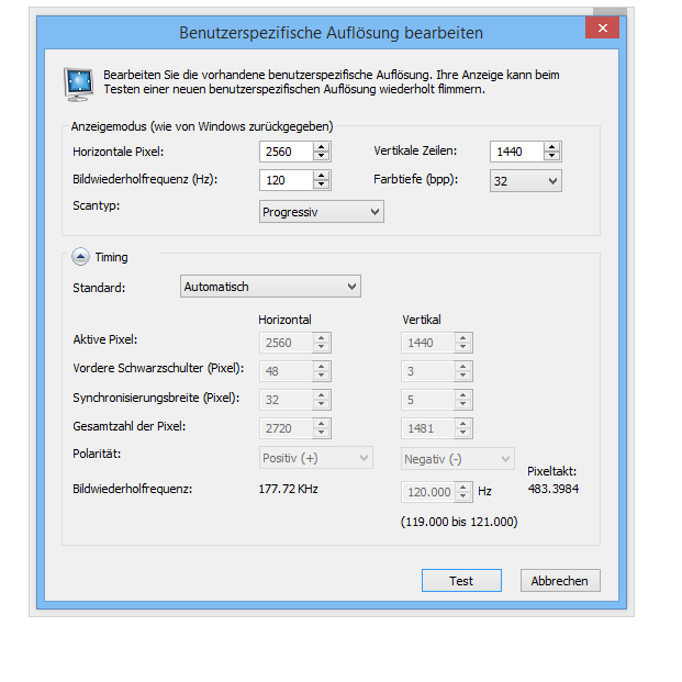 Highest available refresh rate im NVCP forciert? Treiber korrekt gepatcht? Korrekte Resolutions im CRU erstellt und in die richtige Reihenfolge gebracht? ...