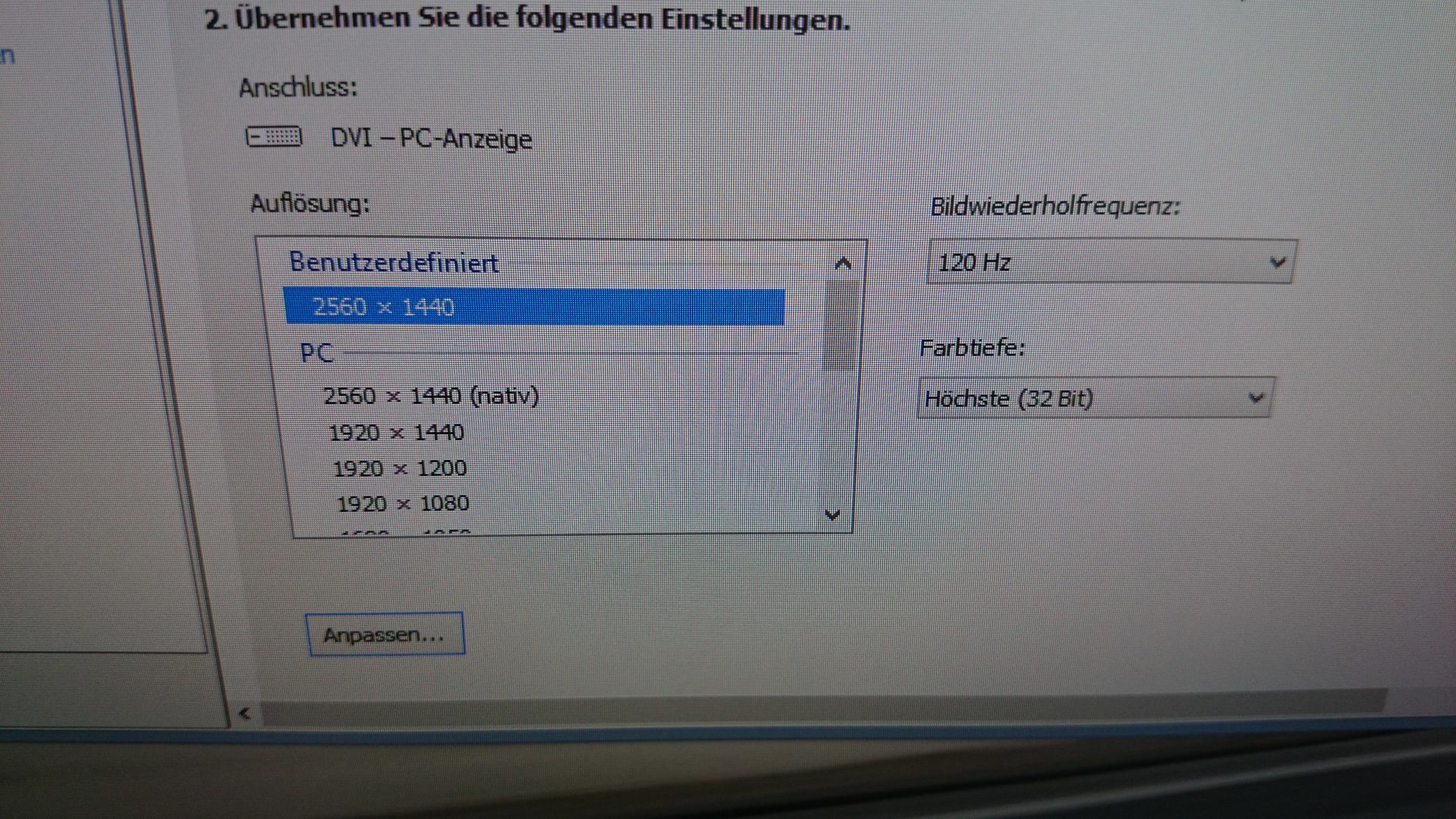 Kabel ist der weg. Jetzt benutze ich im Windows 110Hz und in den Games, wo es sich einstellen lässt 120Hz.