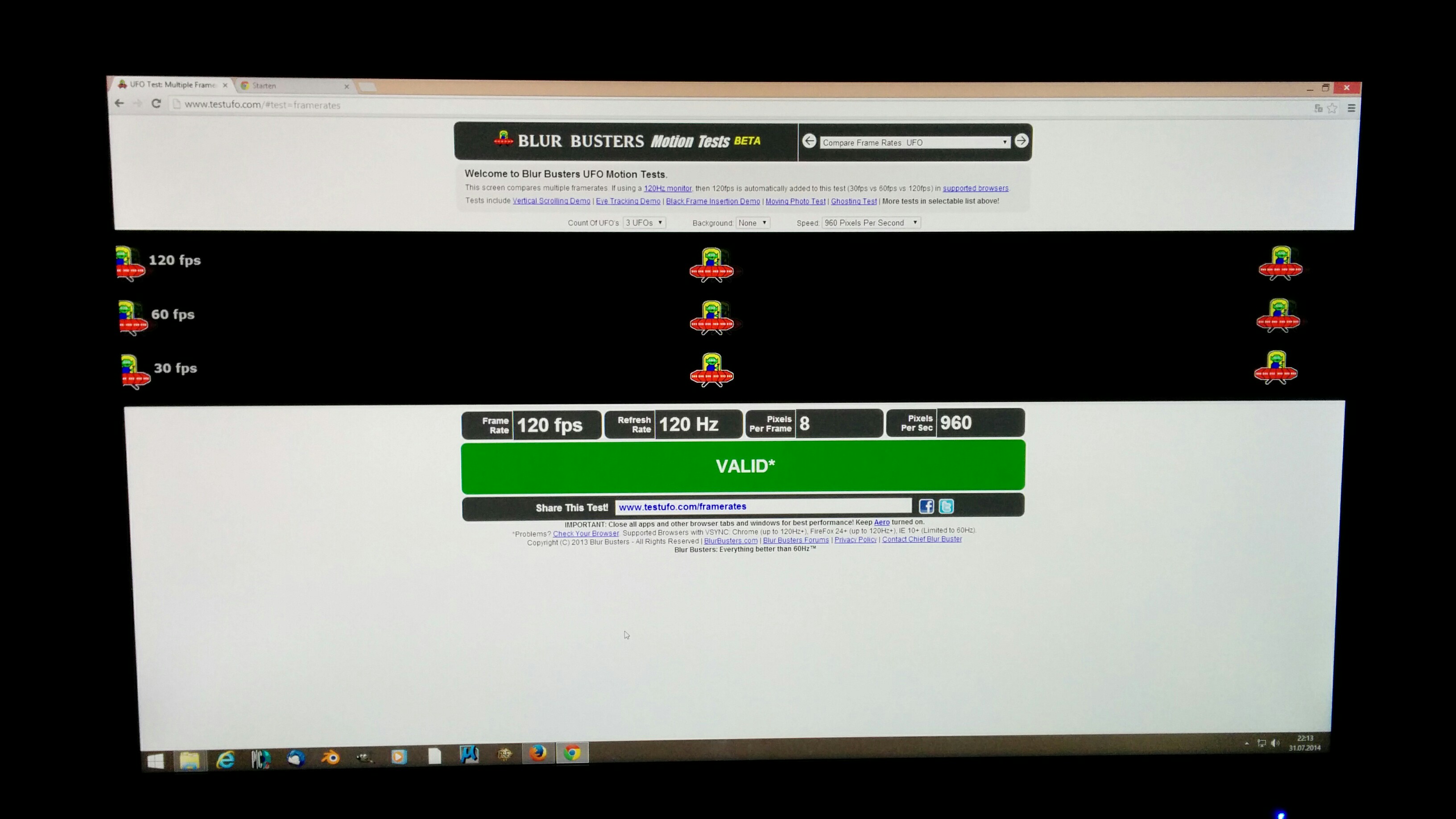 Mach nochmal den Ufo test, am besten in Crome, und dann machst du mit deinem Handy ein Foto vom Bildschirm,