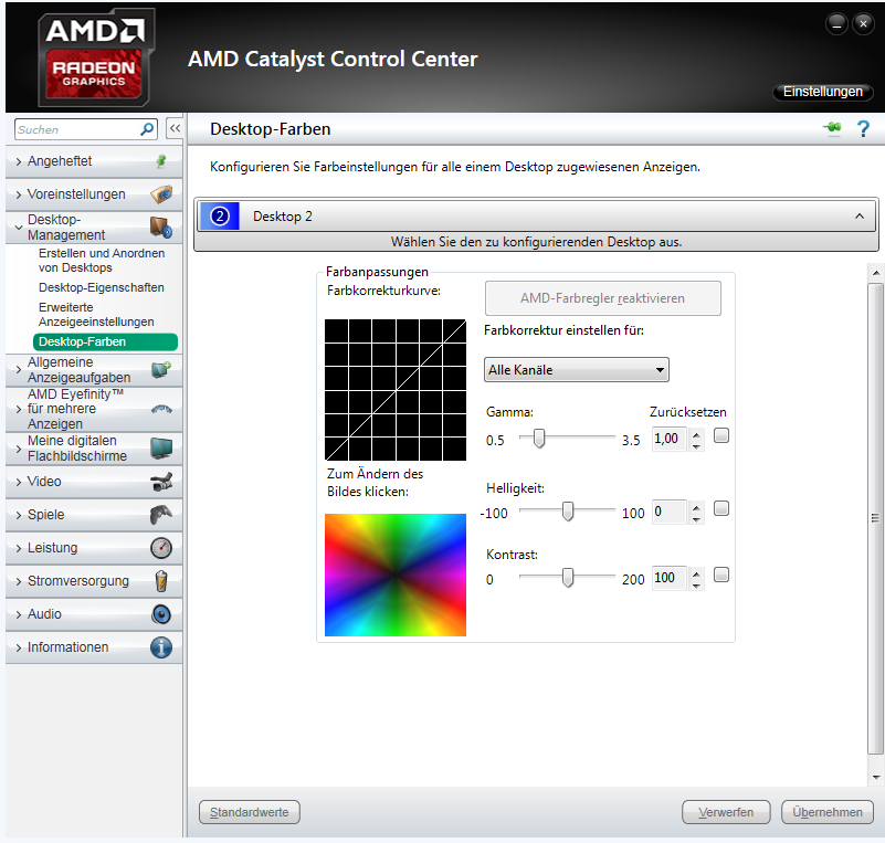 Ja, hell, ich weiß. Aber ich habe das gerne so, gerade für Filme und um das glossy etwas auszugleichen. Was auffällt: gemessen kommt der Monitor ab Werk nicht weit über 150 cd/m², was im krassen Kontrast zur Werbeaussage von 300(!) cd/m² steht. Mit LED sollte eigentlich mehr drin sein, aber ist mir in dem Fall auch egal, ich möchte ja nur 140.