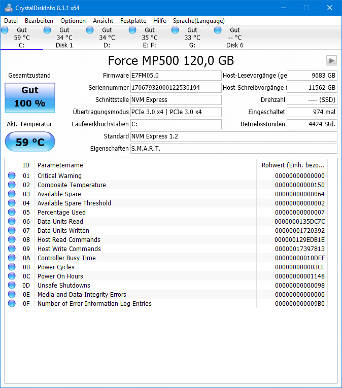 Laufwerk C:/ SSD: Corsair 120GB MP500 NVME