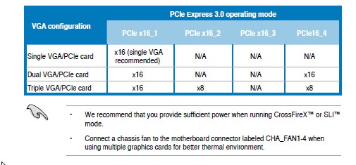 Oder schau in dein Sys-Profile. Da steht sogar 3 x PCIe 3.0/2.0 x16 (dual x16 or x16/x8/x8), d.h. wenn 3 Slots belegt werden läuft der erste mit 16x, die anderen mit 8x.