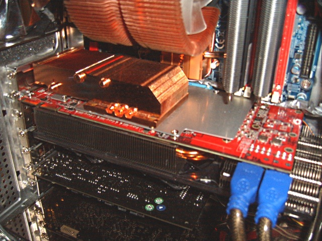 Zusätzlich hab ich noch nen Kupferkühlblock auf die Rückseite der Karte aufgebaut. Dadurch hat die die Temperatur der RAM-Chips um ca. 3-5°C verbessert.