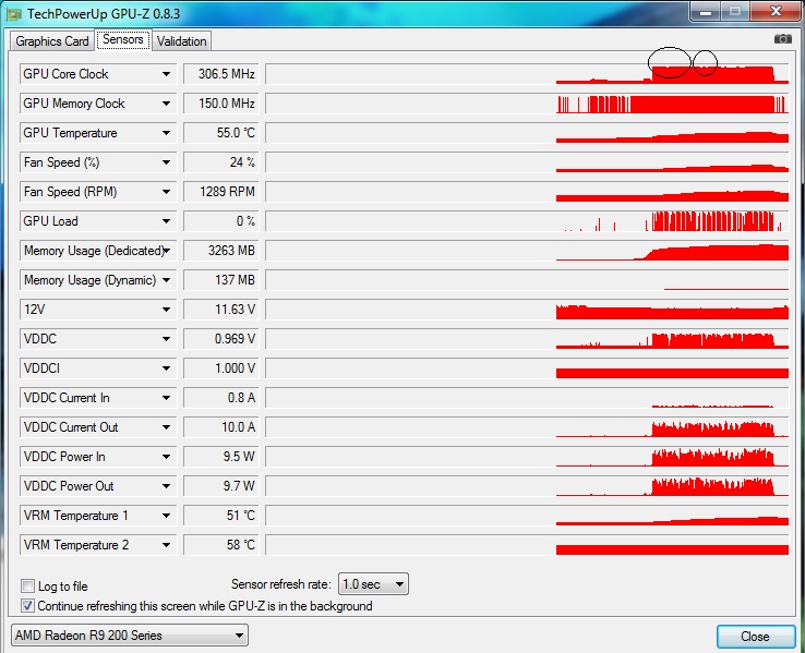 mir ist gestern aufgefallen als ich mal checken wollte was die Grafikkarte so macht das wenn GPU Z im hintergrund läuft alle 4-5 Sekunden kurz runtertaktet und dadurch kurze Framedrops/Ruckler entstehen.