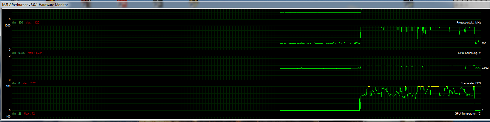 Über die ganze zeit meiner Tests wurde die Grafikkarte nie wärmer wie 75 grad.